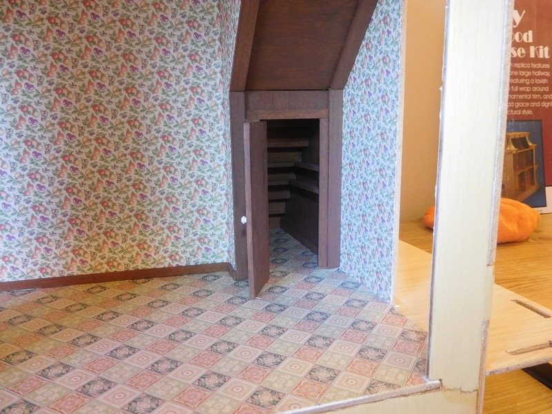 I’m uncertain what caused this problem. I used wallpaper mucilage instead of YES Paste, which is thicker. Perhaps after using YES Paste for so long, I didn’t realize how runny mucilage is and applied too much. It’s essential to use just enough paste to coat the back of the paper; if damage occurs over a large area, it’s often irreparable. I’ve decided to hold off on installing baseboards until I'm certain everything is secure. Instead, I'm flipping the dollhouse upside down to work on the ceiling.
