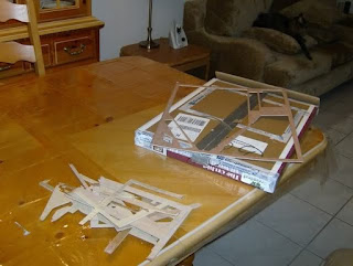 I've sanded all the window parts and started painting them. I'll sand each component as I work on it. I'm staining all the interior trim because I think it will look better with my idea for the floor. Be sure to paint all sides of each piece unless you're certain that all edges will lie flat against a wall.